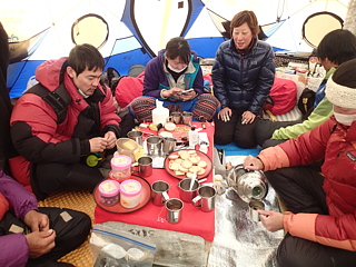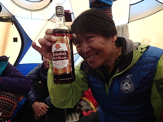 私自身がククリラムのおいしさに目覚めたのは、今年のアマ・ダブラム行でのことです。この旅の往路では、トレッキングの起点となったチェプルンでビールを飲んだあとはアマ・ダブラムBCに入るまで禁酒を通し、そのBCでも登頂祈願のプジャでキャップ1杯のククリラムを口にした以外は、登頂を終えてBCに戻ってくるまでアルコール抜きの生活を過ごしていました。その甲斐あって満願成就した後、ダイニングテントでの登頂祝賀ディナーの際にようやく心置きなく口にできたお酒はビールと共に供されたククリラムのお湯割りです。その後のバックキャラバンでは、日に日に濃くなる酸素濃度と比例してビールやククリラムの量が増えていきましたが、ルクラまでの帰路に同行してくれたクライミングシェルパのチリンもククリラムが大好きで、折々に「お酒飲みますか?」とにやにや笑ってククリラム宴会を仕立ててくれたものです。