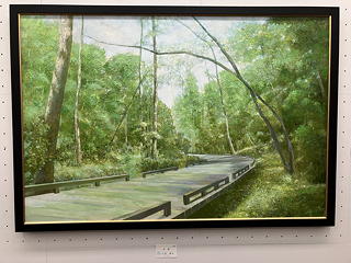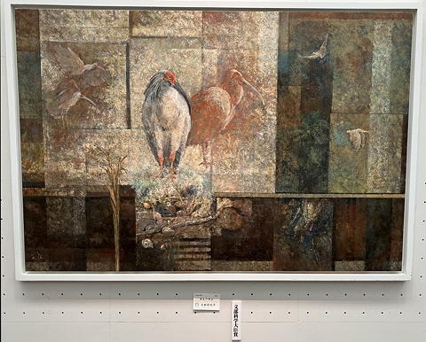 どうやら最高位は文部科学大臣賞ということのよう(違っていたら申し訳ありません)で、その受賞作はこちらの《再生の里山》(土田佳代子氏)です。タイトルからも窺えるように朱鷺の姿を幻想的な構図の中に描いた作品で、さすがにこの絵の前では足が止まってしまいました。