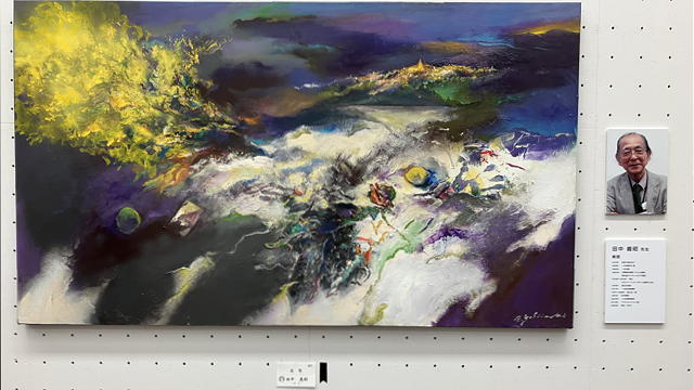 そういう目線で見ると、一水会の中核をなしておられた田中義昭氏の《追想》の大胆な表現も素直に受け止めることができます。一見したところでは前景をいっぱいに占めるイメージの奔流に目を奪われますが、眺めているうちにそれらが遠景の黄金のパゴダのような建物やさらに彼方の山の端を染める光と緊密に結びついていることがわかって、そこにどのような心象風景が広がっているのかと一段深いところから鑑賞することができるようになってきました。それにしても、これが88歳で亡くなった氏の遺作だというのですから驚きです。