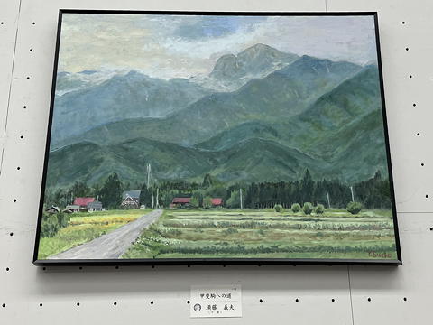 南アルプスの甲斐駒ヶ岳を描いた作品は今回2点が展示されていましたが、これはそのうちの一つである「甲斐駒への道」(須藤義夫氏)です。実は私が登山から登攀へと山行のスタイルを変えていこうとしていた2000年頃、氏が「sudo」さん名義で開設しているサイトである「やっぱり山が好き!」に掲載された山行記録は私と私の周辺の山仲間たちにとってはバイブルのような存在で、それ以来四半世紀にわたり掲示板を通じた交流を細く長く続けさせていただいていました。私の最初の槍ヶ岳北鎌尾根(2001年)はsudoさんの記録を参照することなしには実現しませんでしたし、近年の金峰山表参道(2022年)と同・八幡尾根(2024年)もsudoさんの記録にインスパイアされたものです。そんな具合に山の先達と言っていいsudoさんが絵を描くことも趣味としていることは前々から知っていたのですが、今回の「一水会展」にsudoさんの作品が入選したことを氏のサイトで知り、これは足を運ばなければと思い立ったのでした。