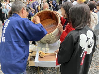 開場してから30分ほどたって参加者がそろそろひと息入れようかなと思うタイミングで、来賓各位による鏡開き。この酒祭りは2013年に始まり、途中コロナ禍による3年間の中断をはさみながら今回が10回目だそうですが、なるほどその蓄積のおかげか運営がこなれていることがタイムテーブルからも窺えます。