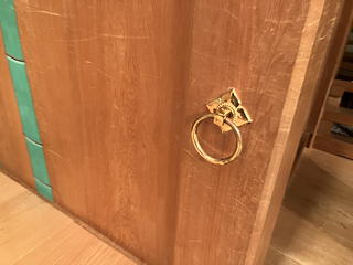 ところで舞台をよく見ると、やはり床のあちこちに傷がついています。これも数多の能楽師が名演・好演を重ねてきたことによる勲章なのだろうなと思いつつ切戸口をくぐりましたが、うっかりすると頭をぶつけそうになるその低さも実際にくぐってみないとわからない事柄です。
