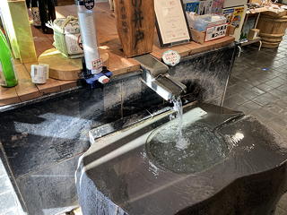 売店に入ると正面にメインブランド『晴雲せいうん』の「無濾過生原酒」と「本醸造しぼりたて生」が並び、2月下旬には「大吟醸朝しぼり」も発売されるとの告知がされていました。また、入ってすぐ左には「玉の井戸」から汲み上げられる仕込水が流れていますが、飲んでみたところ硬水であるはずなのに予想外にまろやかな味わいだったことに驚きました。硬水と酒造りとの関係は国立科学博物館での「和食展」や飯能の五十嵐酒造でも学んだところですが、秩父の石灰岩層から供給されるこのあたりの水はことに硬度が高い(しかし鉄分が少ない)ことが特徴で、これが酵母菌の働きを高めるのだそうです。さらに売店の右奥では、もうひとつのブランド『善祥』を無料で試飲できるようになっており、ここで「純米」「純米吟醸」「純米大吟醸」を飲み比べた結果、フルーティーでやや甘口の「純米大吟醸」(精米歩合45%)を買い求めました。
