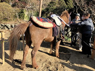 - 矢取り子と乗り子が戻ってくる。両郷から互いの馬にニンジンとミカンを与えてねぎらう。
