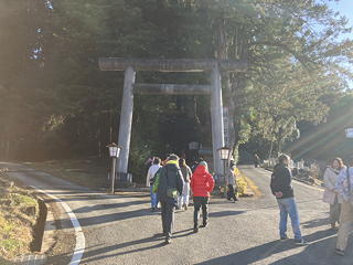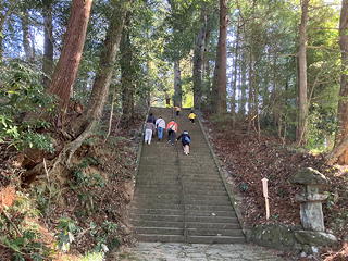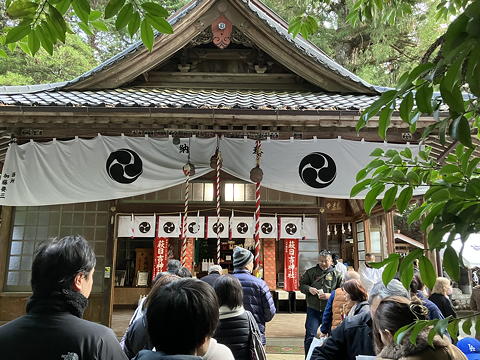 ところが石段を登って前方を見ると拝殿の前には参拝客が長蛇の列を作っており、このままでは流鏑馬神事の開始に間に合いそうにありません。小川町役場の係の方の助言もあって、我々は参拝を後回しにして馬場に向かうことにしました。