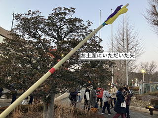 - 東西南北、中央、萩日吉神社に向けて矢を射る四方固め。さらに観客に向けて数十本放たれる矢は縁起物なので取り合いになる。