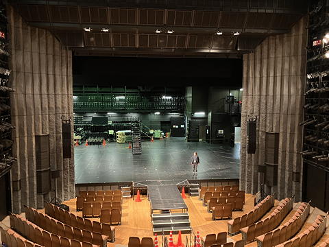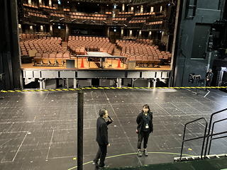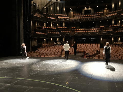 ここで座席を離れて舞台上に登り舞台自体の変化を体感するパートに移りますが、なるほど舞台から客席を見るとこういう風に見えるのか……と、まずこの時点でちょっと感動しました。ここから自分の声を客席最後列まで届かせることができたら、それはそれは気持ちいいに違いありません。