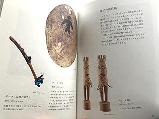 本書を「図録」と考えればここがそのメインパートになりますが、実は全体で200ページほどある中でこの章のボリュームは50ページほど、さらに次の章の中で展示の様子を伝えるページを加えてもプラス10ページほどです。それでも、そこに掲載された衣服や祭具、それにウイルタならではのトナカイ飼育に関わる道具などを見ると、寒冷地に文化的に適応した彼らの暮らしの様子が伝わってきますし、特に衣装の中には中国東北部の影響を感じさせるものもあって、サハリンと大陸との結びつきの強さを実感することができます。
